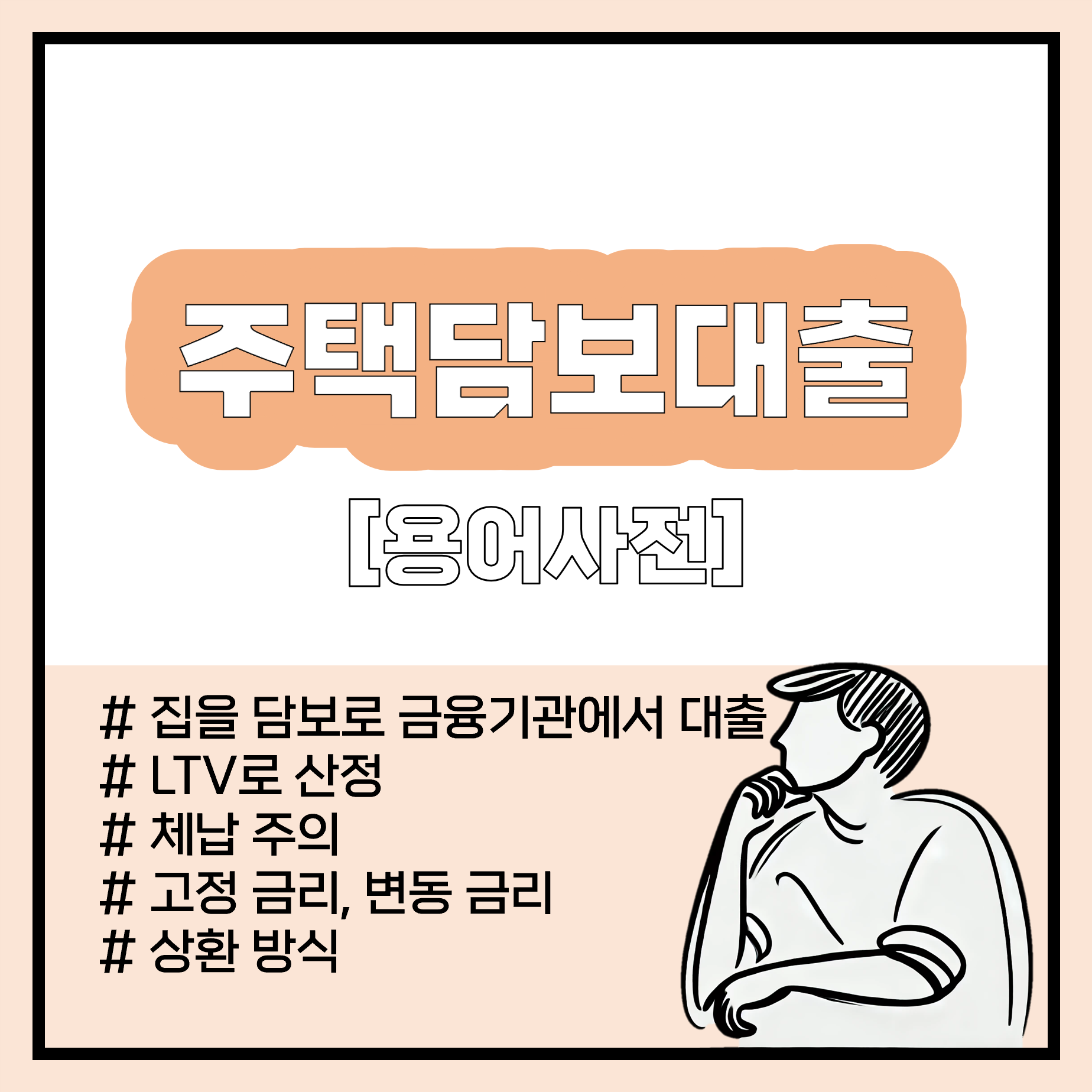 - 주택을 금융기관에 담보로 제공, 대출 한도는 집 가치(감정가)의 일정 비율(LTV, Loan To Value)에 따라 결정