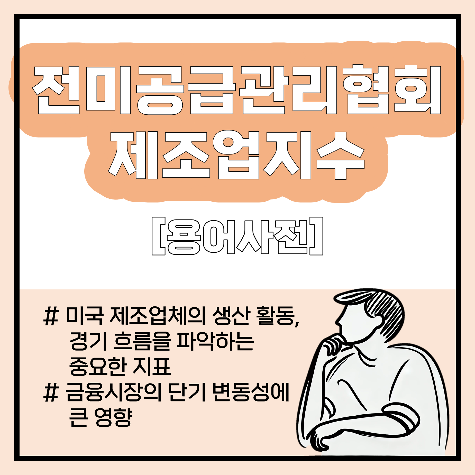 ISM이 제조업체 구매관리자들을 대상으로 신규주문, 생산, 고용, 재고, 공급자 배송 등을 조사해 매월 초 발표한다. 지수는 50 이상이면 확장, 50 미만이면 위축으로 해석된다. 제조업은 경기순환에 민감하기 때문에, 이 지표는 경기 전환점을 조기에 포착하는 데 중요한 역할을 한다.